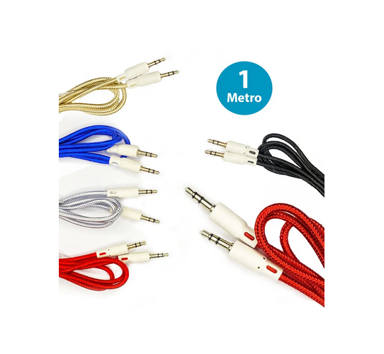 Cabo P2 Auxiliar P2 x P2 90 graus 1 metro Emborrachado Colorido AUX-90