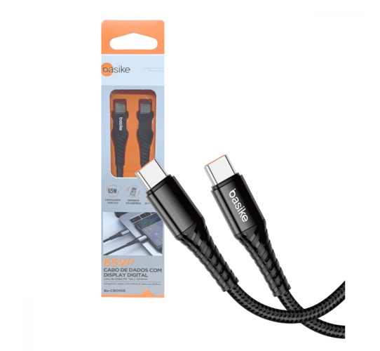 Cabo de dados Tipo C / Tipo C 65W 1 Metro BASIKE BA-CBO106