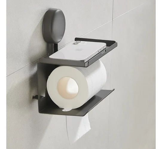 Suporte 2 Em 1 Papel Higiênico + Lenço E Prateleira Celular Cor Acrilico Preto