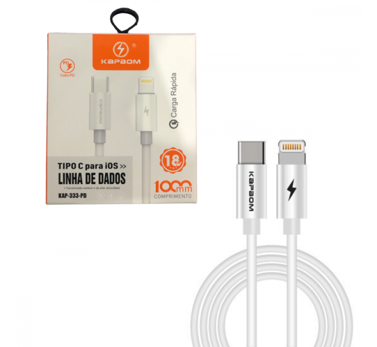 Cabo de dados Lightning IOS / TIPO-C 18W de 1 Metro Kapbom KAP-333-PD
