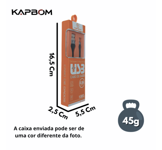 Cabo de dados V8 3.1A Turbo 2 Metros Kapbom KAP-350-V8