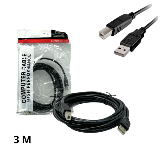 Cabo de Impressora Universal USB de 3 Metros AM+BM com Filtro contra Interferências CBO-3205