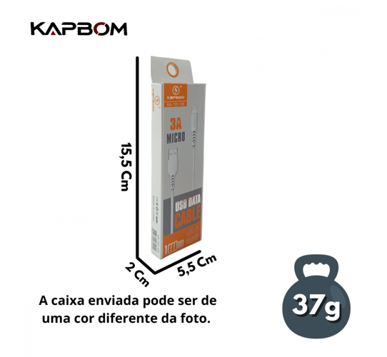 Cabo de dados V8 4.8A 1 Metro Kapbom KA-912-V8 (***DISPONÍVEL SOMENTE NA COR BRANCO)