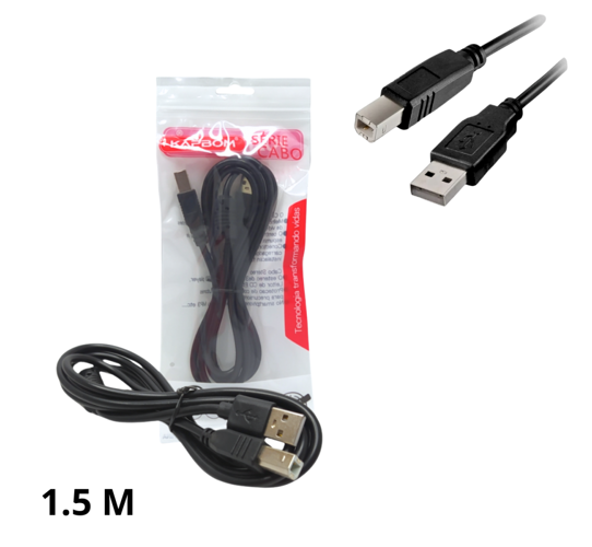 Cabo de Impressora Universal USB de 1,5 Metros AM+BM com Filtro contra Interferências Kapbom KAP-V06