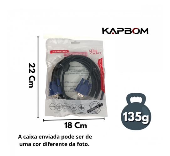 Cabo VGA/VGA Conexão de Vídeo para PC e Tela 3 Metros Kapbom KAP-VGA-3M