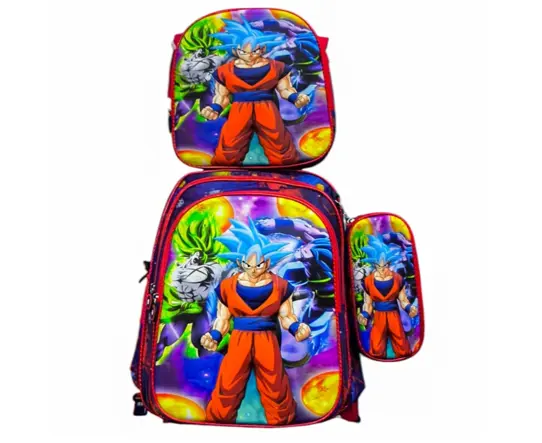 Kit Mochila Escolar de costas 3D do Dragon ball