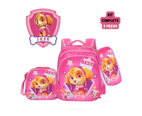 Kit Mochila de Rodinha Escolar 3D da Patrulha Canina Skye