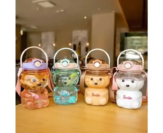 Garrafa De Água Urso 1l Transparente Com Alça Infantil SMILE