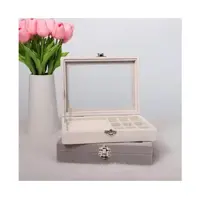 Porta Joias Tampa Vidro Organizador Veludo Divisória